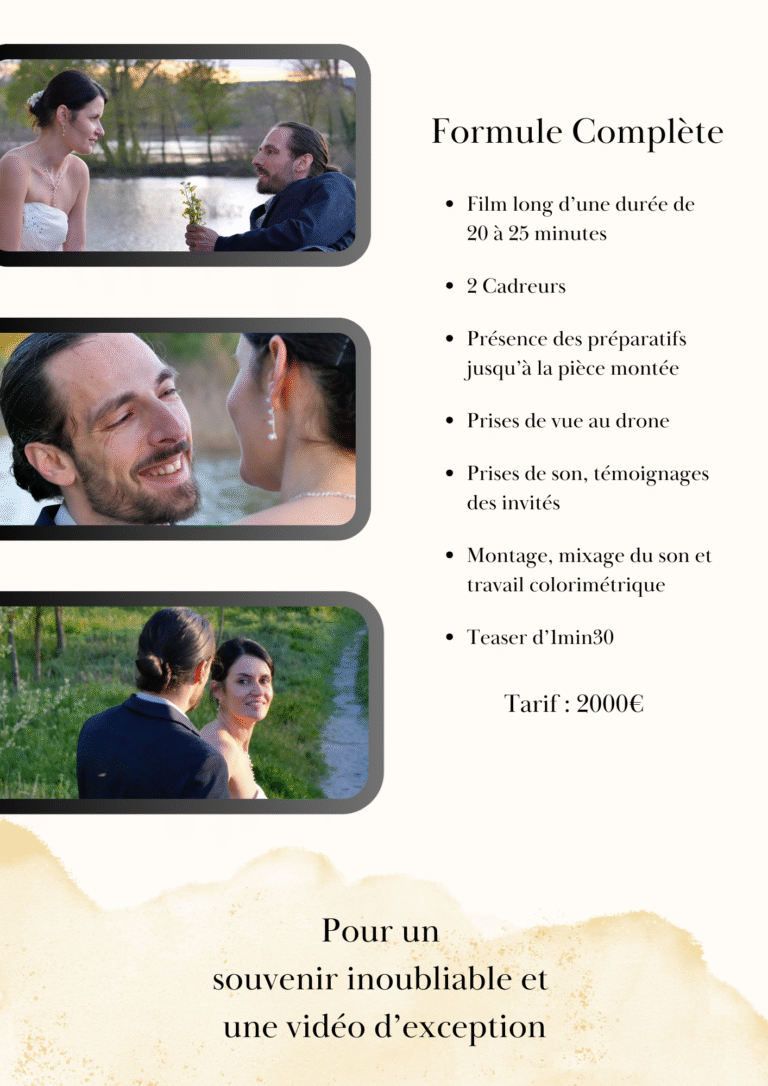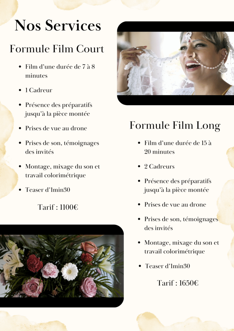 Pour toute autre demande que les films de mariage veuillez nous contacter pour demander un devis.